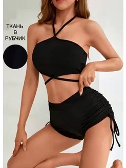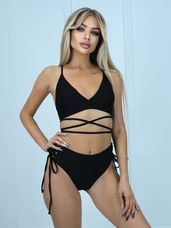 Купальник раздельный высокая посадка 3в1 с накидкой (парео)