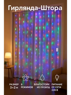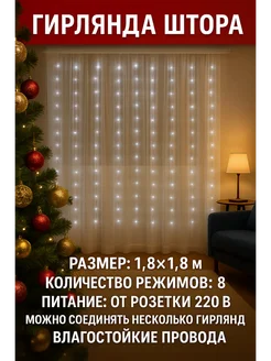 Новогодняя гирлянда для дома и офиса штора 1.8х1.8м