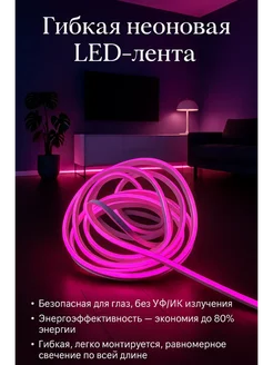 Гибкая неоновая лента розового цвета для декора и вывесок 5м