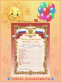 Табель успеваемости. С предметами для 8-11 класса. 10 штук