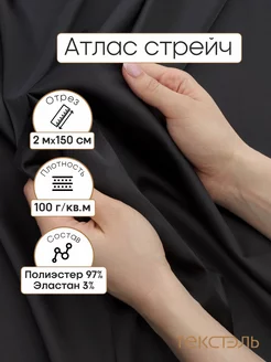 Атлас стрейч 100 г отрез 200х150 см шелковая ткань для шитья