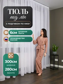 Тюль под лен готовый 300х280 с подгибом по низу для спальни