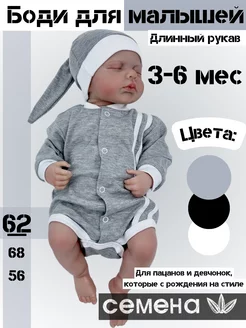 Боди с длинным рукавом для детей 3-6 мес серый белый