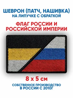 Шеврон флаг РФ и Российской империи с липучкой 8х5 см