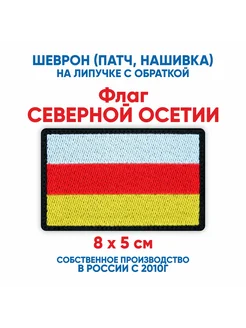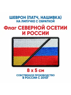 Шеврон флаг Северной Осетии и России с липучкой 8х5 см