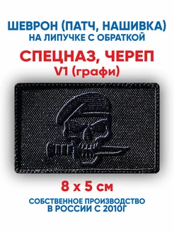 Шеврон "СПЕЦНАЗ, Череп V1 [графит]" с липучкой 8х5 см