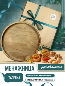 Менажница деревянная тарелка в подарочной упаковке