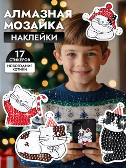 Подарочный набор алмазной мозаики новогодние котики стикеры