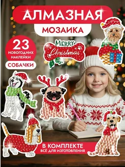 Стикеры мозайка алмазная новогодние собаки 23 шт