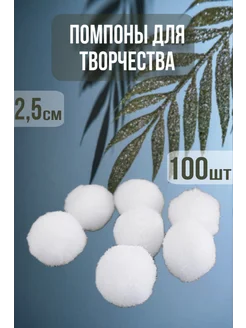 Помпон для рукоделия белый набор 100 шт 2,5 см
