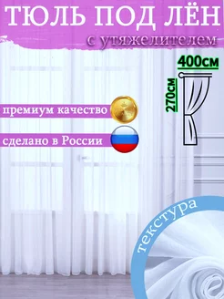 Тюль под лен белый 400х270 с утяжелителем в спальню