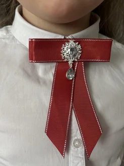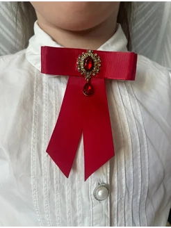 Брошь-жабо на 1 сентября тёмно-красная с белым камнем