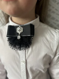 Брошь-жабо на 1 сентября чёрная с кружевом