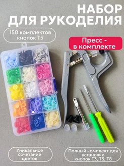 Набор для рукоделия, 150 кнопок Т5 в органайзере + пресс