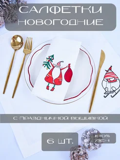 Салфетки новогодние, сервировочные с вышивкой 43*43 см 6 шт