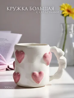 Кружка керамическая большая с сердечками