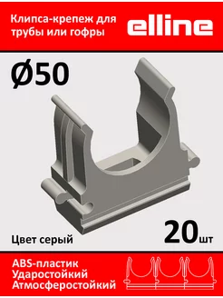 Крепеж клипса для трубы,гофры d50 серая 20 шт