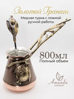 Армянская медная цельнокатаная турка для кофе 800мл с ложкой
