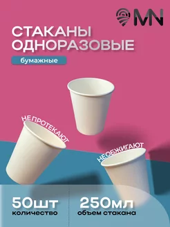 Одноразовые стаканы бумажные для кофе и сока 250 мл 50 шт