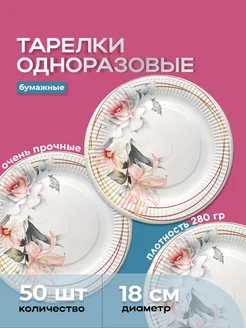 Тарелки одноразовые белые 18 см 50 шт из бумаги