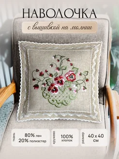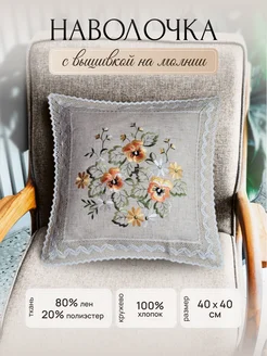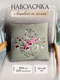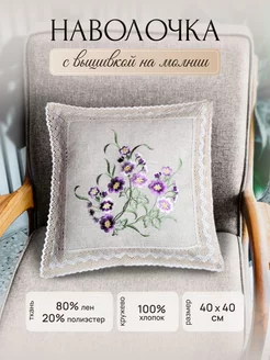 Наволочка декоративная с вышивкой "Анютины глазки"