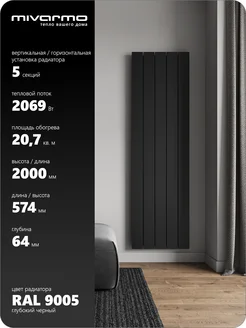 Секционный радиатор отопления - RAL 9005 200 см - 5 секций