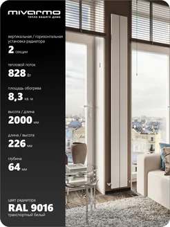 Секционный радиатор отопления - RAL 9016 200 см - 2 секции