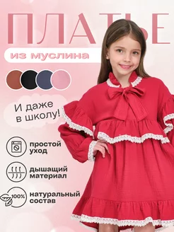 Платье для девочки нарядное праздничное муслиновое с рюшами