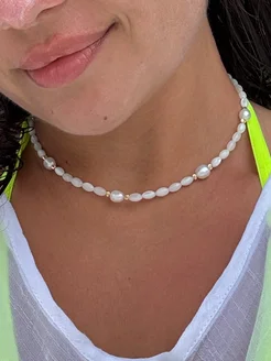 Чокер на шею из жемчуга и натуральных камней бусы белые