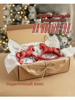 Елочная игрушка Лошадка-качалка, набор красная лошадь