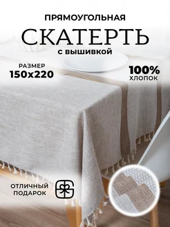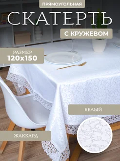Скатерть на стол тканевая с кружевом праздничная 150х220