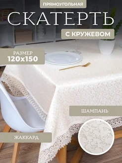 Скатерть шампань тканевая с кружевами на стол 120х150