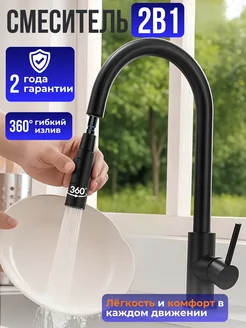 Смеситель для кухни черный гибкий выдвижной с лейкой