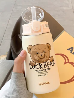 Эстетичная милая бутылка из стали для воды 400 мл мишка