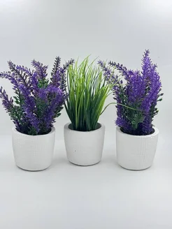 Цветы декоративные в гипсовых горшках искуствеными цветами