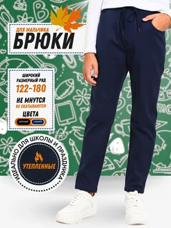 Школьные брюки синие теплые на резинке