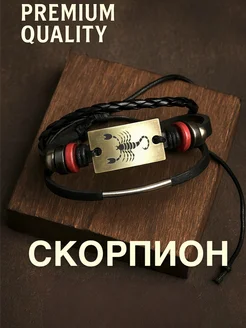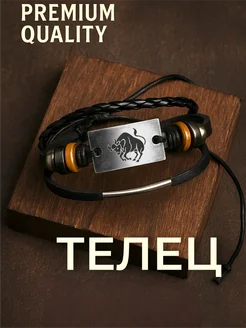 Браслет регулируемый кожаный со знаком зодиака