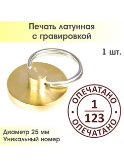 Печать латунная 25 мм, неповторяющийся номер, 1 шт