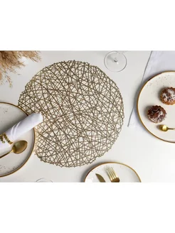 Золотые салфетки сервировочные на стол, d=38 см, 4 шт