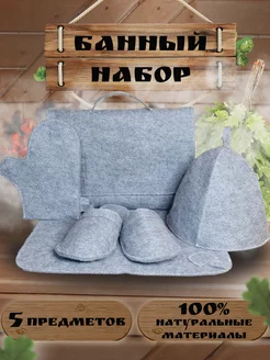 Набор для бани и сауны 5 предметов (Светло-серый)