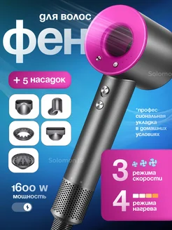 Фен для волос профессиональный с 5-ю насадками и ионизацией