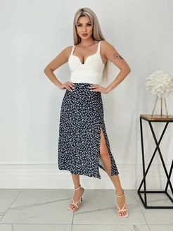 Юбка летняя миди с разрезом