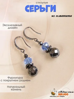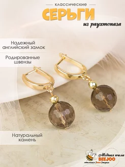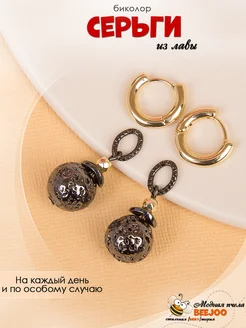 Серьги конго кольца трансформер биколор с подвеской из камня