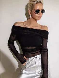 Лонгслив с открытыми плечами прозрачный