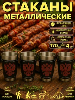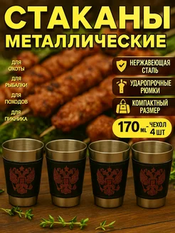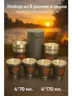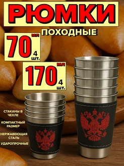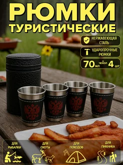 Набор рюмок походных с гербом России 70 мл в кожаном чехле