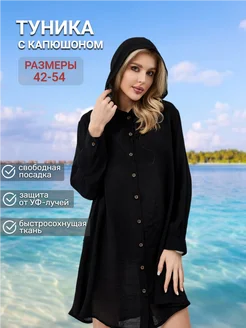 Туника рубашка пляжная с капюшоном черная