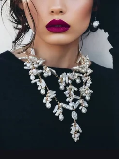 Колье на шею бижутерия многослойное жемчужное