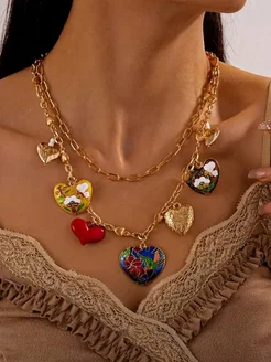 Колье цепочка с подвесками сердце