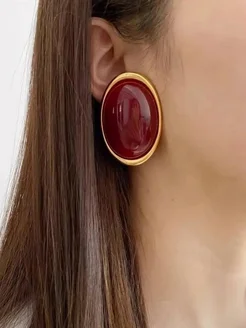 Серьги крупные овальные с камнем бижутерия