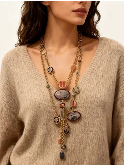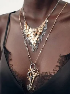 Колье длинное многослойное чокер бижутерия